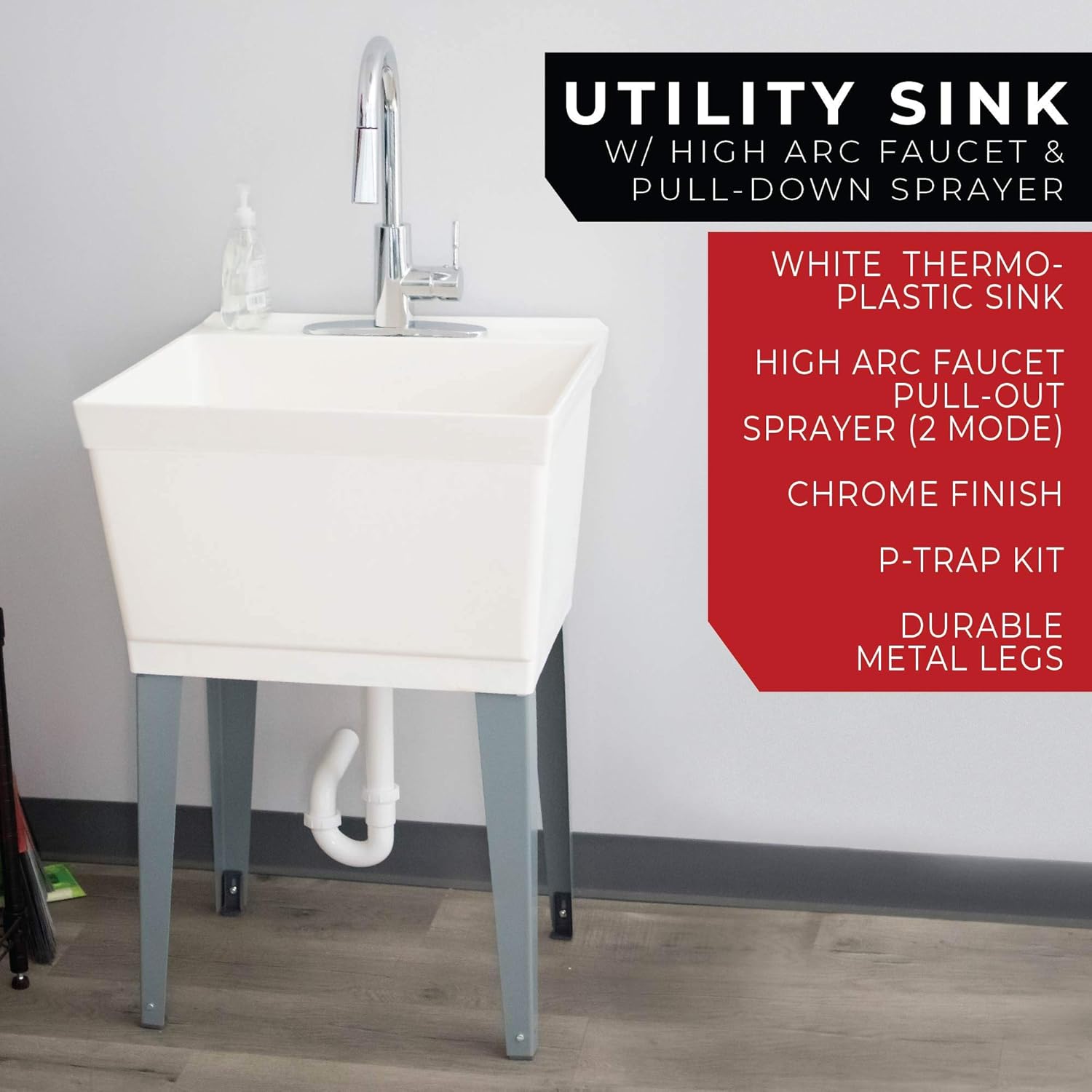utility sink with pull down sprayer