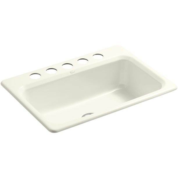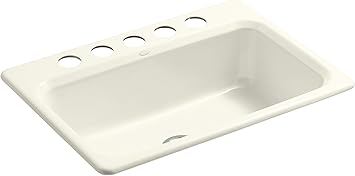Covered under Kohler's limited lifetime warranty With its classic design the Bakersfield sink coordinates beautifully with a wide range of kitchen decors Constructed of enameled cast-iron which combines strength, durability and insulation benefits Top-mount installation makes for a quick and easy install wile keeping the elegant you crave KOHLER Bakersfield 31 x 22 in. 5 Hole Cast Iron Single Bowl Undermount Kitchen Sink in Almond $664.26 KOHLER Bakersfield 31 x 22 in. 3 Hole Single Bowl Self-Rimming or Drop-In Cast Iron Kitchen Sink with Center Drain in Almond Find Bakersfield kitchen sinks at Lowe's today. Shop kitchen sinks and a